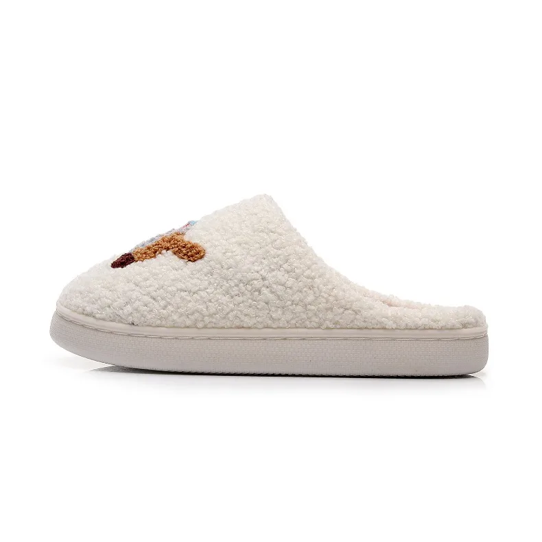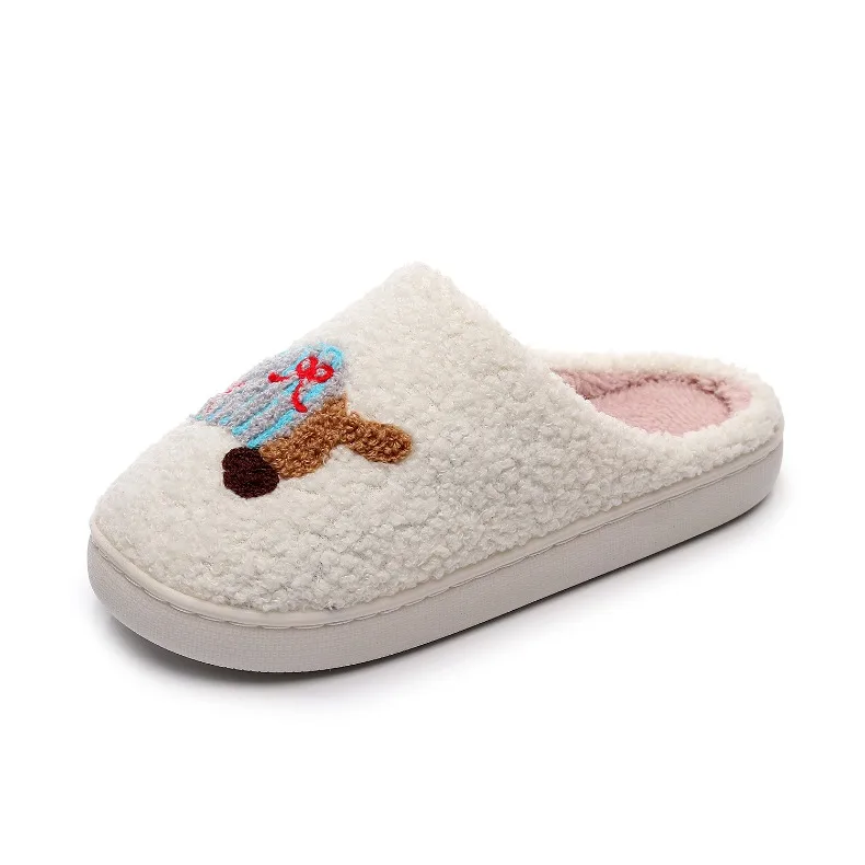 2026 Dachshund Pet Pattern Embroider Plush Home Slippers Couple Thick-Soled Comfortable Warm Cotton Slippers for Indoor Bedroom